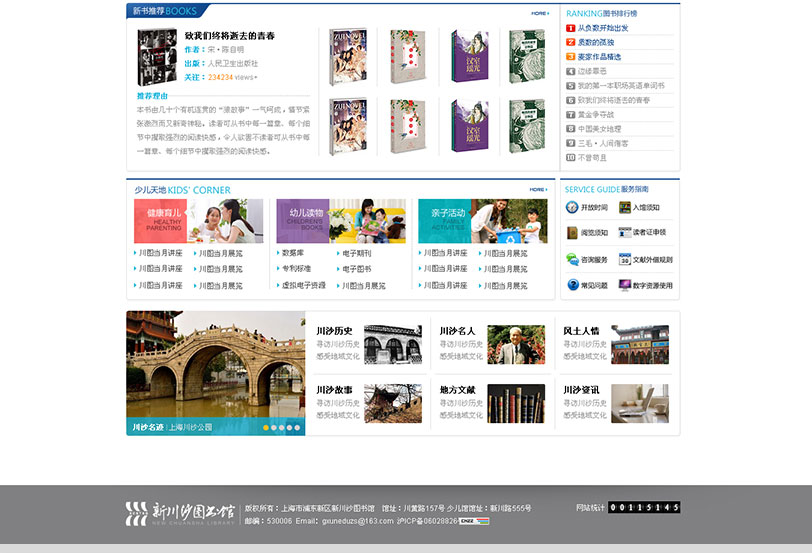 上海浦东新区新川沙图书馆由原川沙图书馆(位于川黄路157号)和原川沙少儿图书馆(位于新川路555号)于2006年7月合并组建而成。
